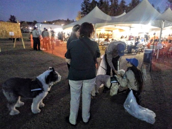 was that we had dogs present in base camp (which peaked at about 6,000 people) every day. We even took the most highly trained dogs, from Hope AACR, whose handlers were former first responders, out to public safety agencies and neighborhoods that burned. We also had a great response from PALS and others whose names I don’t have. The dogs helped people relax and sometimes seemed to be the key to lowering anxiety about telling their painful stories. As a result, all of us are thinking about how to integrate dogs – and their handlers, of course – into our responses (large or small).