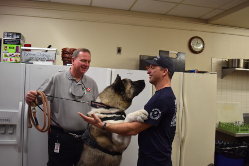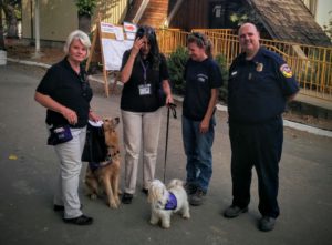 We saw firefighters, EMTs and dispatchers relax and open up as they petted and played with the dogs. I had a CAL FIRE captain as an instructor a couple of weeks ago. He told me that he was exhausted and irritable, doing paperwork, when one of our dog teams approached him. “Go away, I don’t have time for this,” he thought. Two minutes later, after petting the dog, he said he was relaxed and grateful that they were there. That’s what we want to hear.
