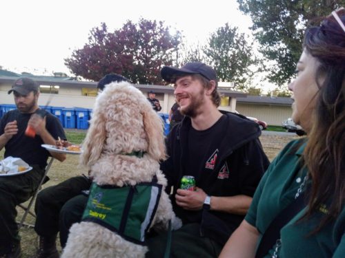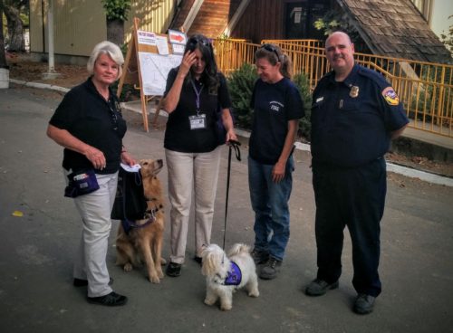 In our peer support response, we did something new – we called in every dog team we knew about. At earlier fires, especially in Lake County two years earlier, we’d seen how effective dogs can be.